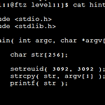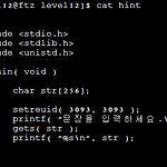 이번 난이도부터는 attackme라는 파일과 힌트에는 소스코드가 주어진다 취약점을 보고 공격하란 뜻인 것 같다 소스코드를 보니 취약점이 2개가 있다 Strcpy(str, argv[1])에 BOF취약점 하나와 Printf(str)에 포맷 스트링 취약점 먼저 첫번째 BOF취약점은 strcpy함수가 문자열의 길이를 검사하지 않고 복사하는 것 때문에 오버플로우 취약점이 생긴 것이다 그리고 두번째 포맷스트링은 원래 기본적인 printf함수 라면 printf("%d",x) 나 printf("%s",str)이렇게 아니면 printf("hello world"); 처럼 인자가 정해져 있어야 한다 그런데 소스에는 printf함수 안에 배열 이름이 적혀져 있다 잘은 모르겠지만 실행해보면 출력이 된다 그러나 이렇게 사용하게 ..