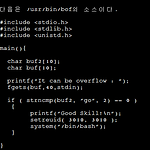먼저 level10소유의 파일을 먼저 찾는다 디버깅을 하려했지만 권한이 없다 어차피 소스코드가 있으니 컴파일하고 디버깅한다 이번 문제는 다른 내용들은 크게 중요하지 않다 먼저 스택 프레임, 즉, 프로그램이 로딩될 때 얼마의 용량을 차지하는지에 대한 부분을 볼것이다 0x28, 40바이트가 할당된다 소스코드를 보면 char buf2[10]; char buf[10]; 이렇게 총 20바이트가 할당된다 더미가 들어간다는 것이다 그럼 더미가 어디에, 얼마나 들어가는지 알아보자 저 부분을 보면 ebp-40에 fget함수를 사용하고 0x10을 정리한다 즉 ebp-40부터 10만큼을 사용하는 것이다 그리고 ebp-24를 strcmp에 사용하면서 0x10을 정리한다 ebp-24부터 10만큼 사용하는 것이다 소스코드를 보면..